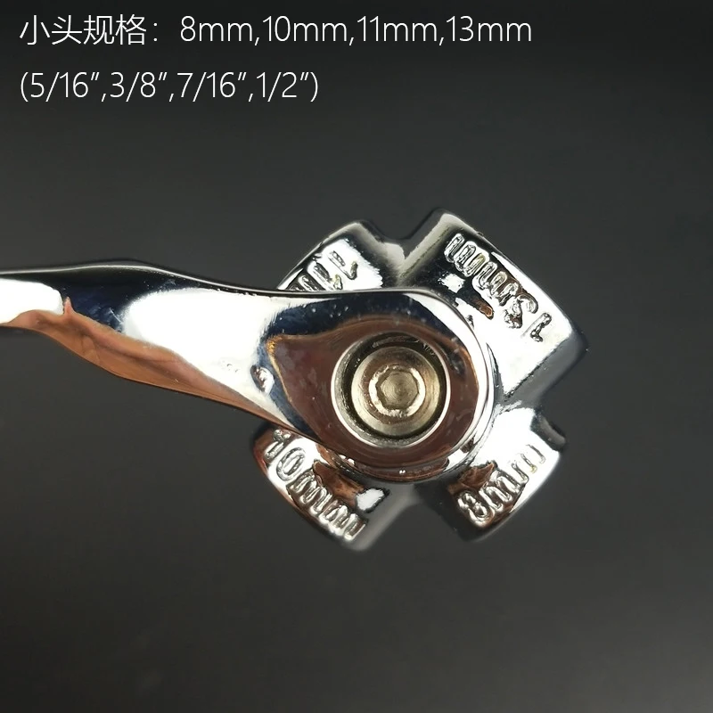 • Socket Wrenches Compact Work With Spline Bolts, 6 Point ,12point,Torx,Square Damaged Blots And Any Size Standard Or Metric, 8mm(5/16''),10mm (3/8"),11mm (7/16"),13mm (1/2''),It Shows On The Wrench With Numeric Etchings To Show The Corresponding Sizes.